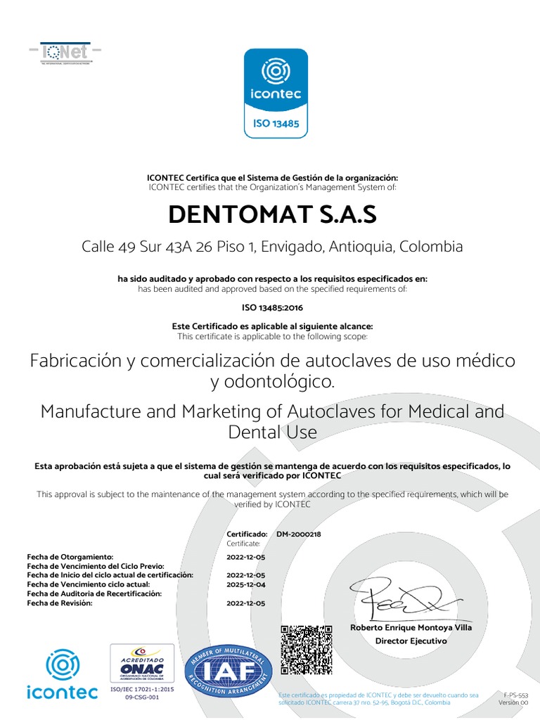 Certificado: DM-2000218