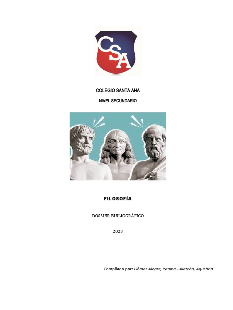 filosóficos y sus ideas (Sócrates, Platón y Aristóteles). Pensamientos de San Agustín de Hipona y Santo Tomás