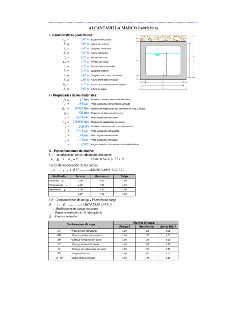 Diseño y Cálculo de Alcantarilla 2.40x0.80 m