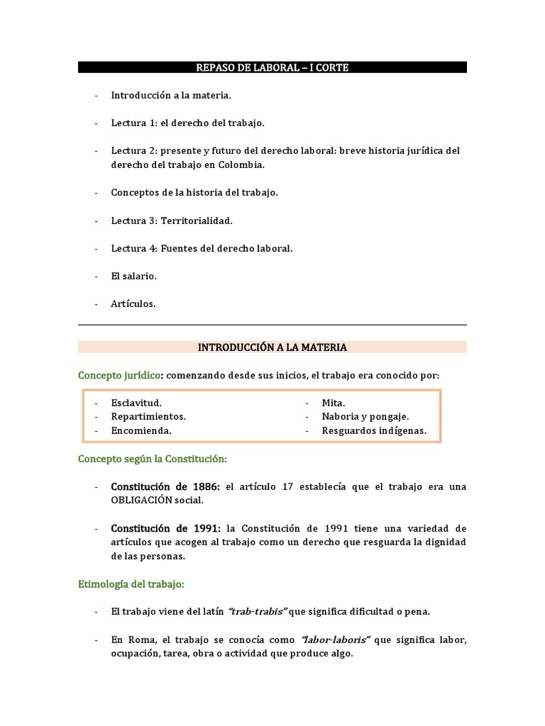 REPASO DE LABORAL – I CORTE