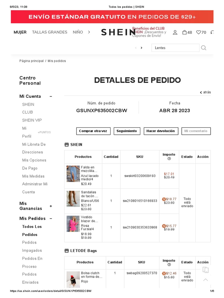 8/5/23, 11:08 Todos los pedidos | SHEIN