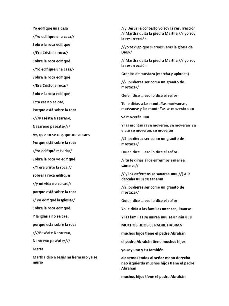 Sobre la roca yo edifiqué // tu le dirías a los enfermos sánense ,