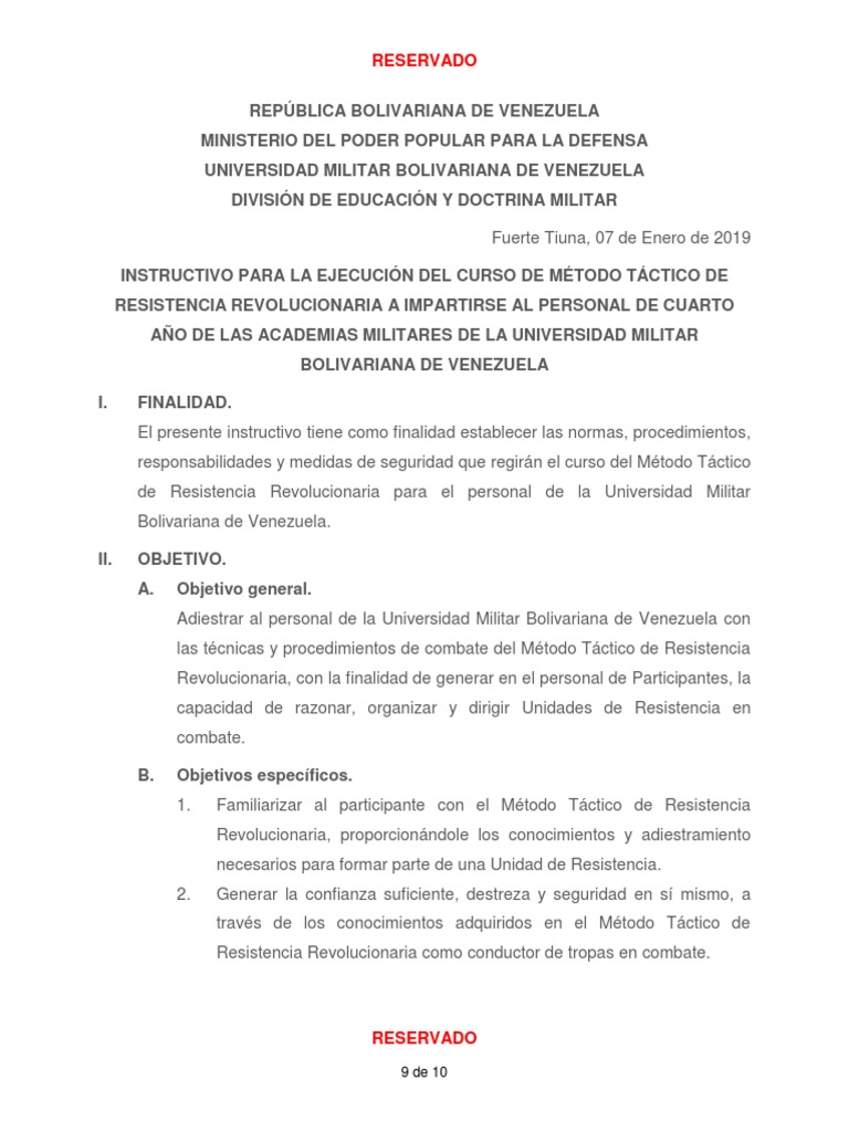 de Resistencia Revolucionaria para el personal de la Universidad Militar