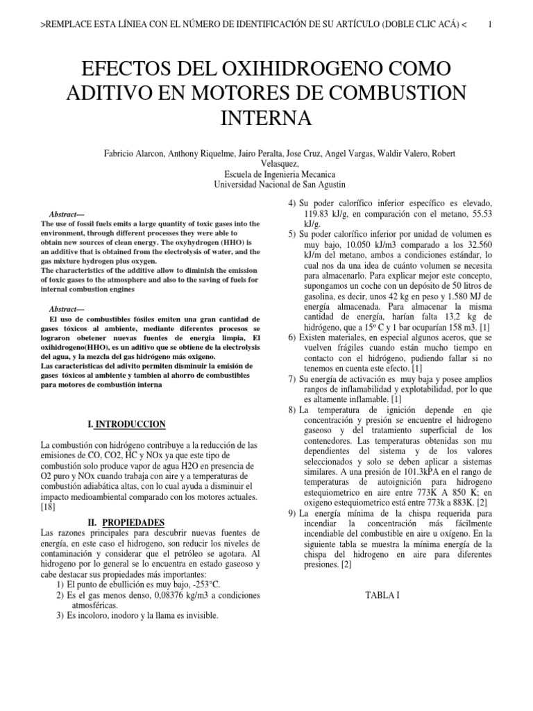 Tipos de problemas de pre-ignición y sus soluciones. Para el uso de hidrogeno en un motor de combustión interna el