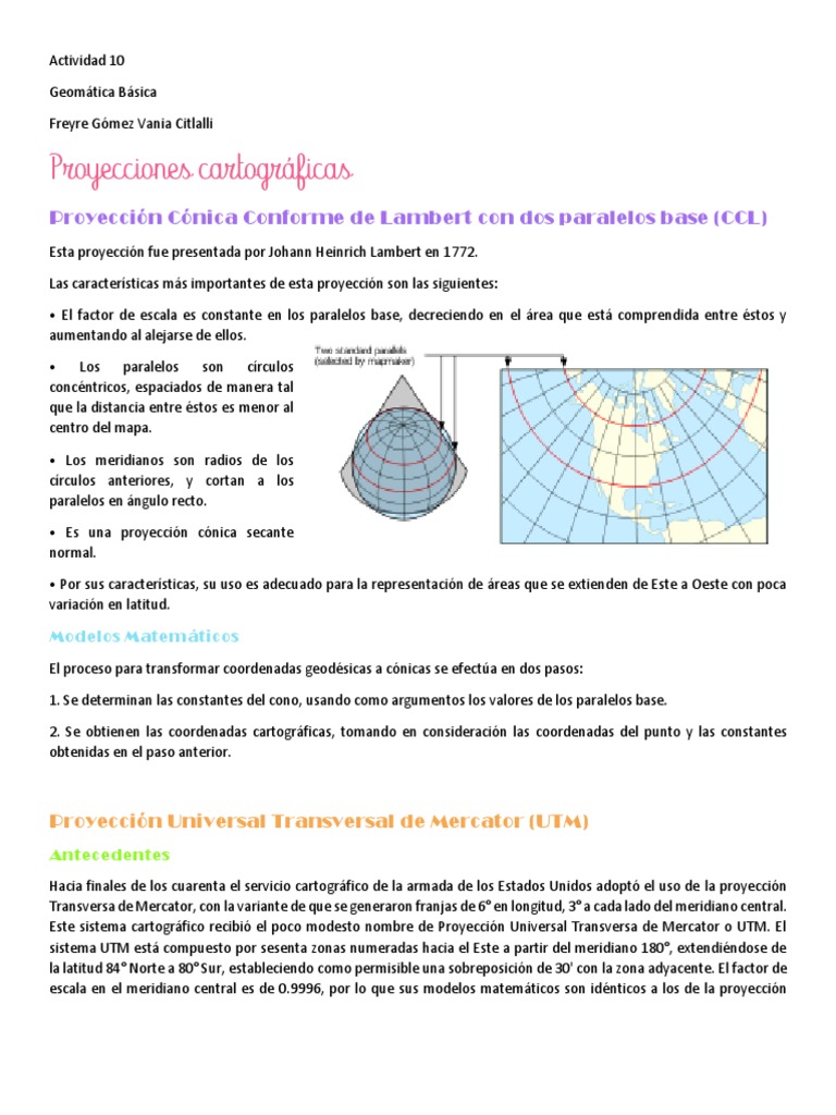 escala en el meridiano central es de 0.9996, por lo que sus modelos matemáticos son idénticos a los de la proyección