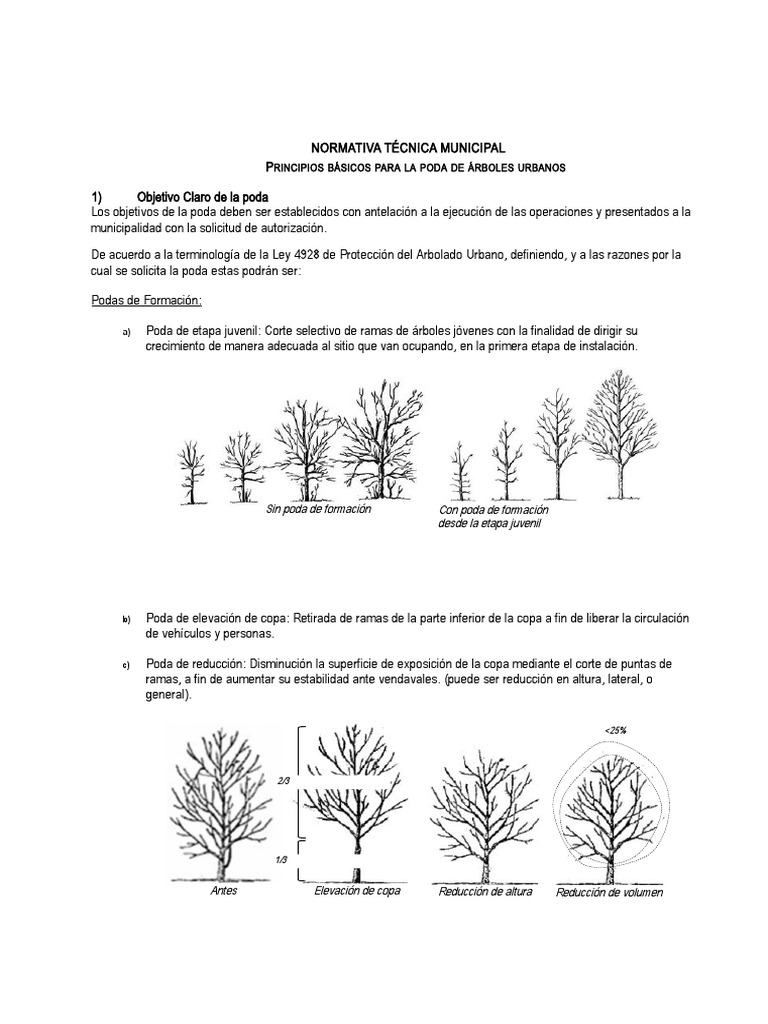 Los objetivos de la poda deben ser establecidos con antelación a la ejecución de las operaciones y presentados a la