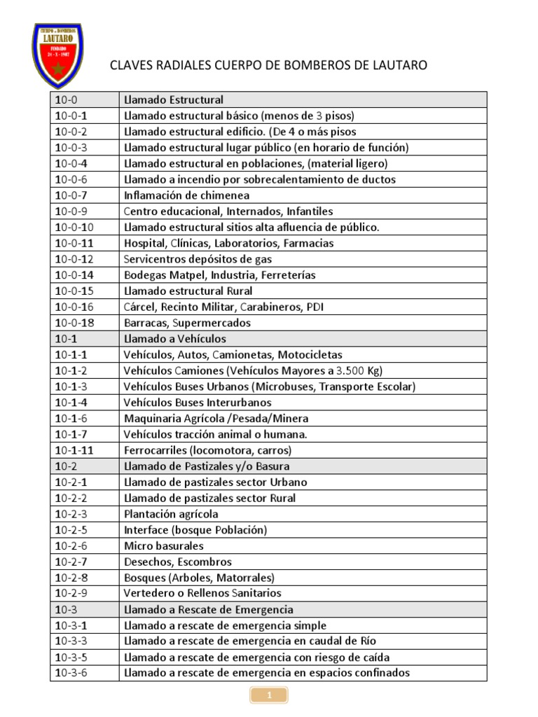 CLAVES RADIALES CUERPO DE BOMBEROS DE LAUTARO