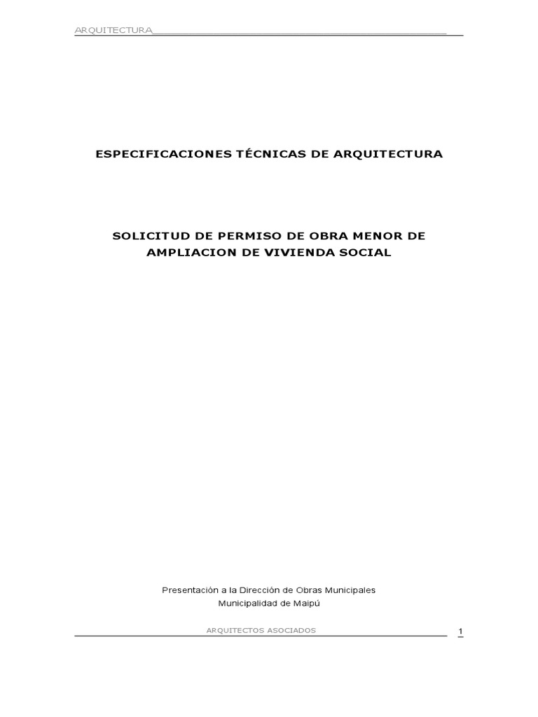 Las presentes Especificaciones Técnicas, están referidas a una PERMISO DE OBRA