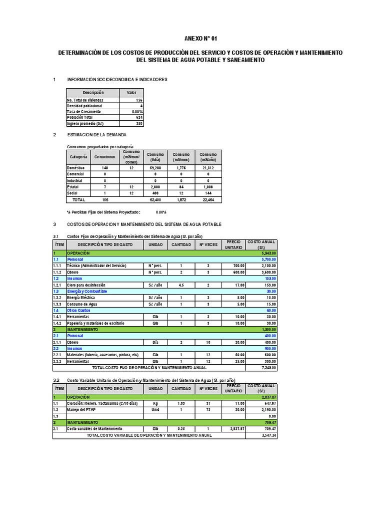 2 Costo Fijo de Mantenimiento del sistema de agua (S/. por año) 1,300.00 22,464 0.06