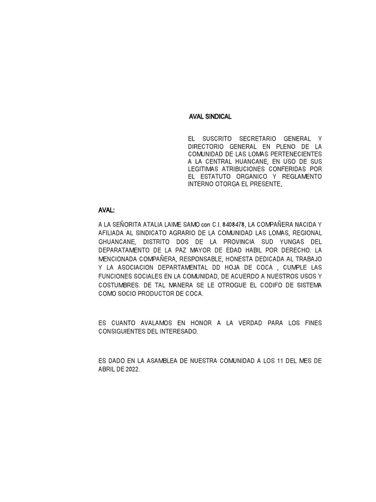 AVAL SINDICAL