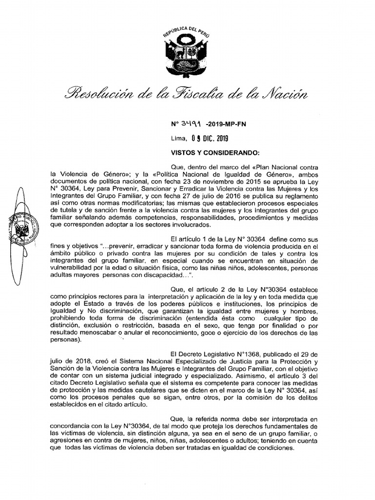 conforme a lo sefialado en la Resolucién de la Fiscalia de la Nacion N° 3308-2019-MP-FN.