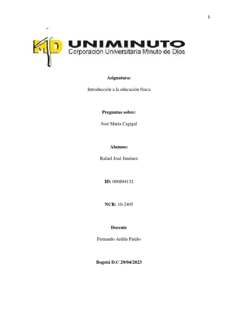 1. ¿Cómo conceptualiza Cagigal a la educación física?