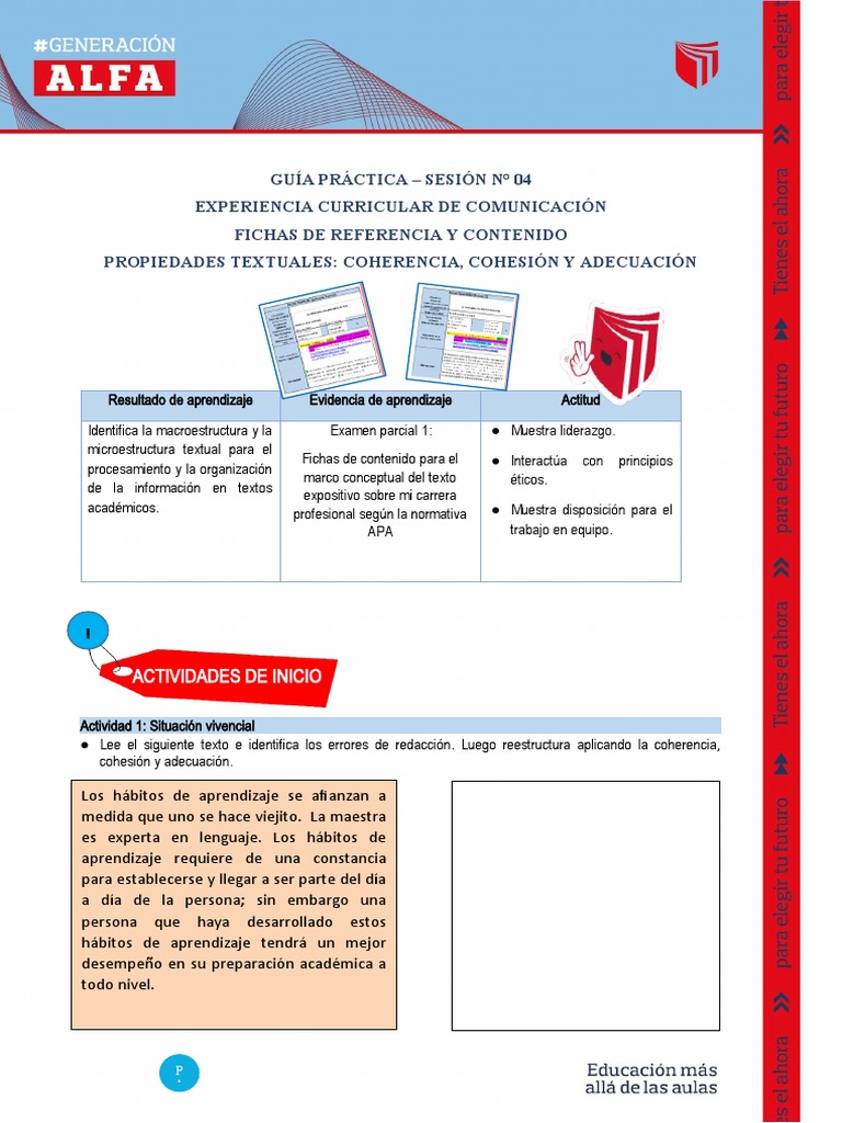 ● Se aplica la RÚBRICA - SESIÓN 04. Tema: Fichas de referencia y de contenido