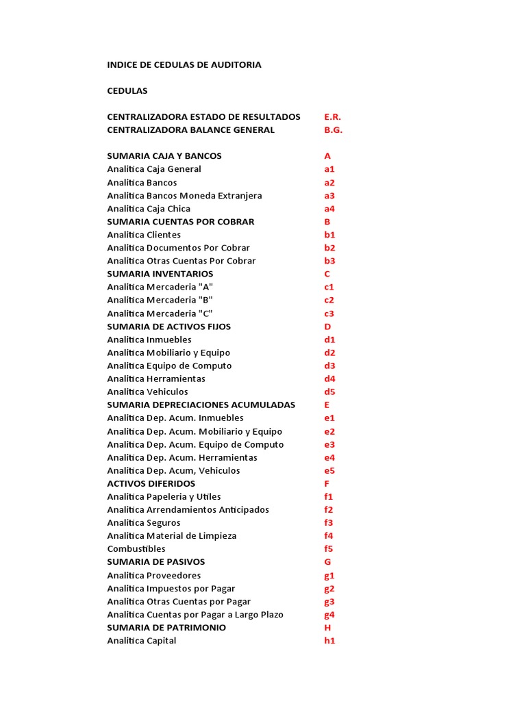 Índice de Cédulas de Auditoría Completo