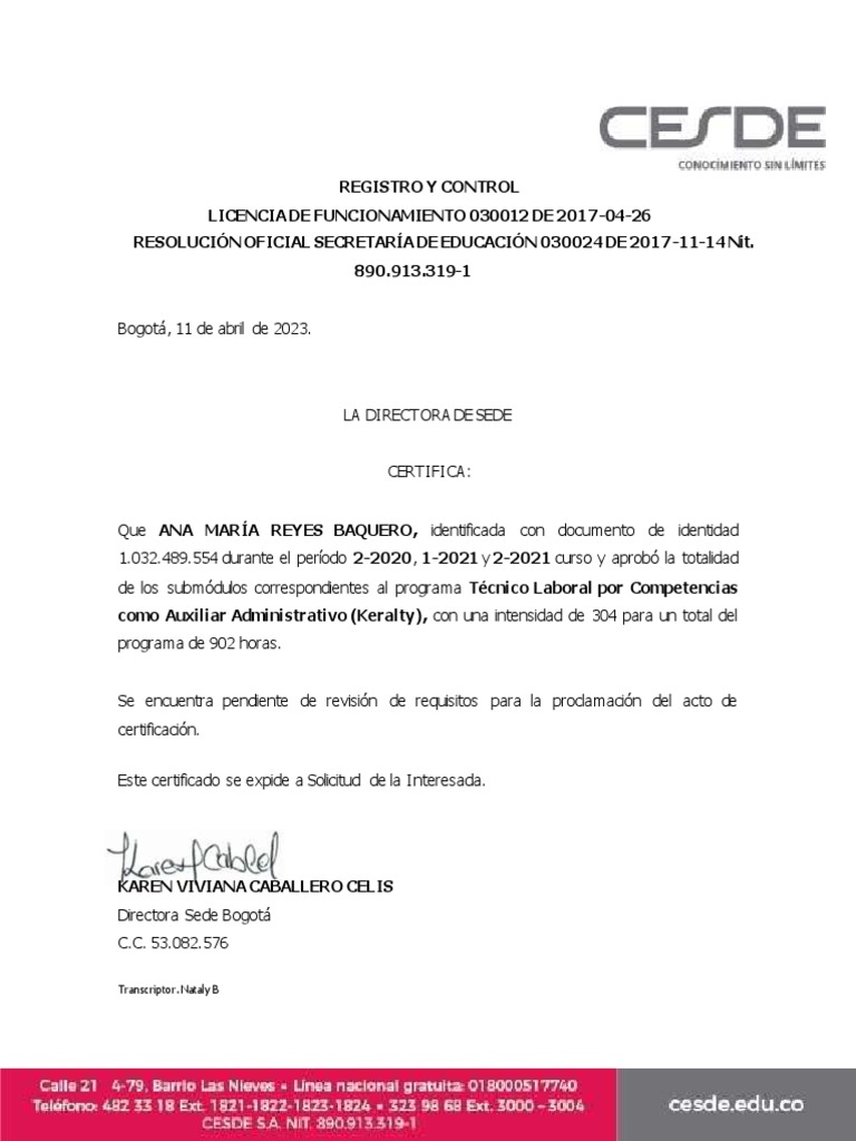certificación.