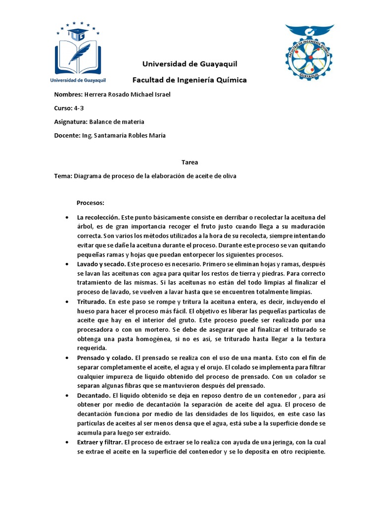 Tema: Diagrama de proceso de la elaboración de aceite de oliva