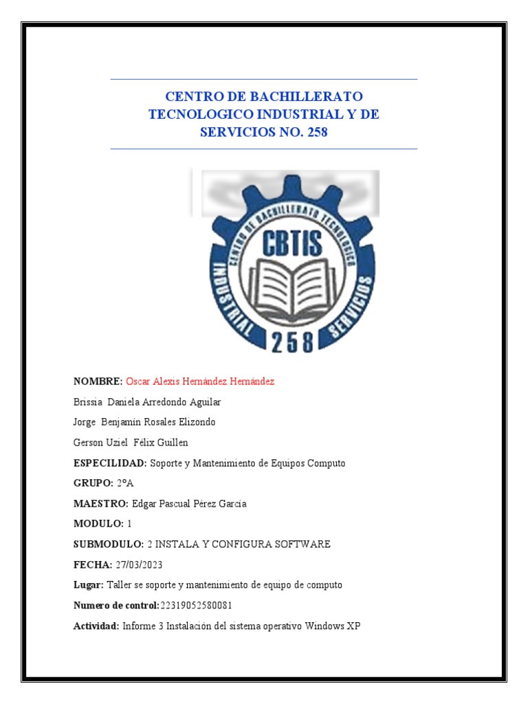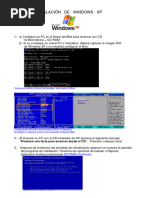 Actividad: Informe 3 Instalación del sistema operativo Windows XP