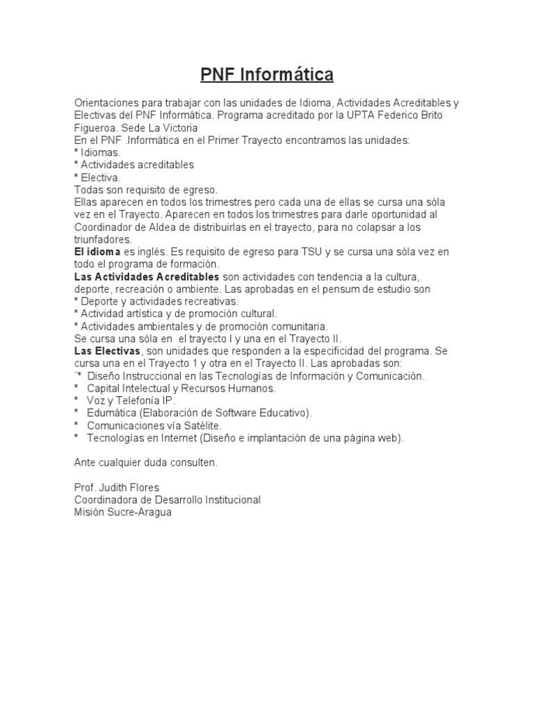 Electivas del PNF Informática. Programa acreditado por la UPTA Federico Brito