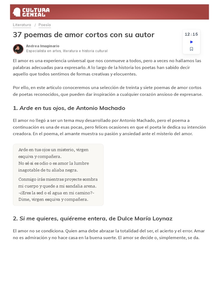 Por ello, en este artículo conoceremos una selección de treinta y siete poemas de amor cortos