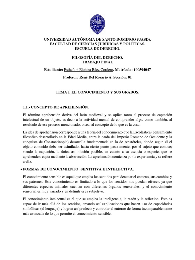 TEMA I. EL CONOCIMIENTO Y SUS GRADOS.