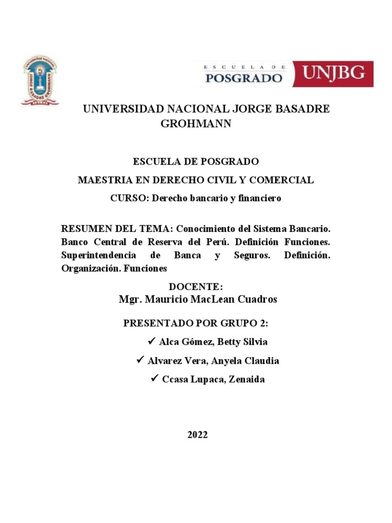 RESUMEN DEL TEMA: Conocimiento del Sistema Bancario.