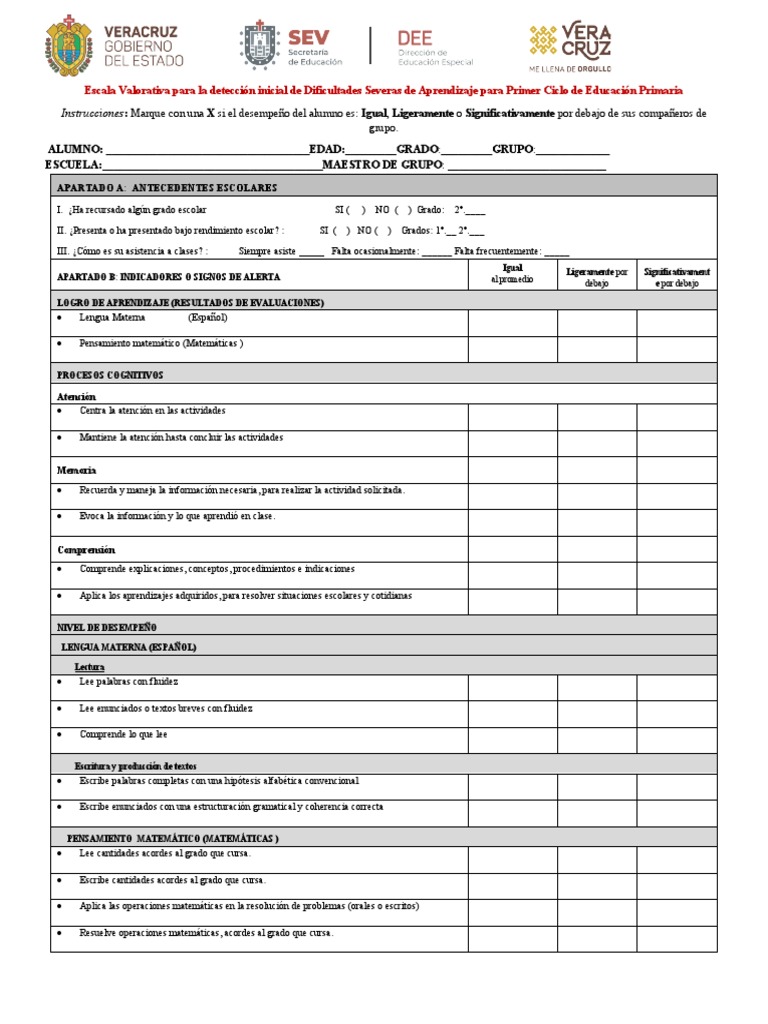 Escala Valorativa para la detección inicial de Dificultades Severas de Aprendizaje para Primer Ciclo de Educación Primaria