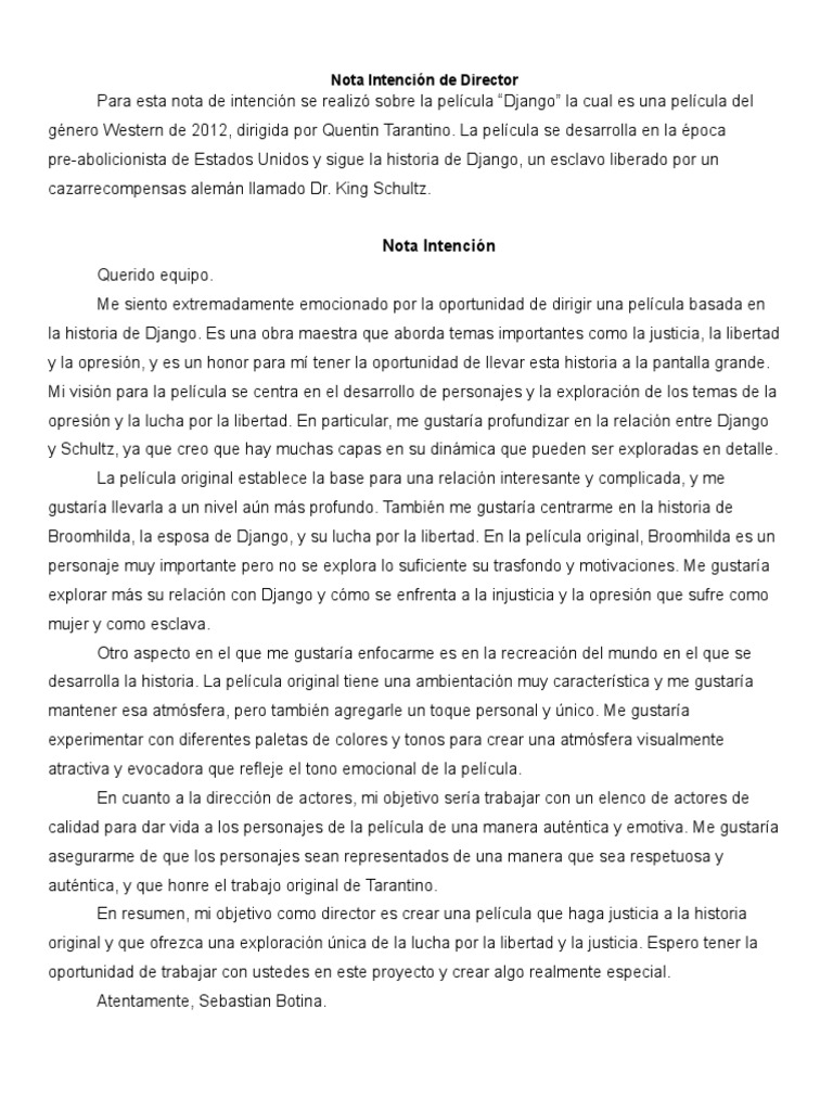 Para esta nota de intención se realizó sobre la película “Django” la cual es una película del