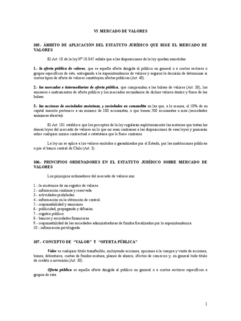 105.- ÁMBITO DE APLICACIÓN DEL ESTATUTO JURÍDICO QUE RIGE EL MERCADO DE