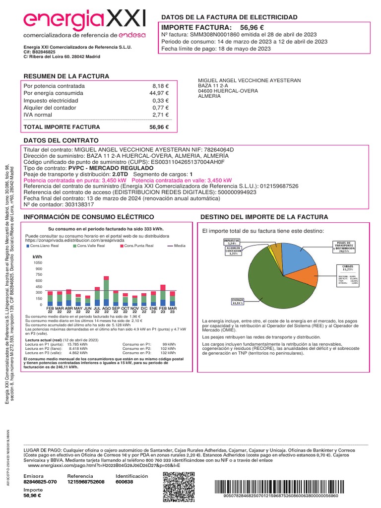 Energía XXI Comercializadora de Referencia S.L.U. Fecha límite de pago: 18 de mayo de 2023