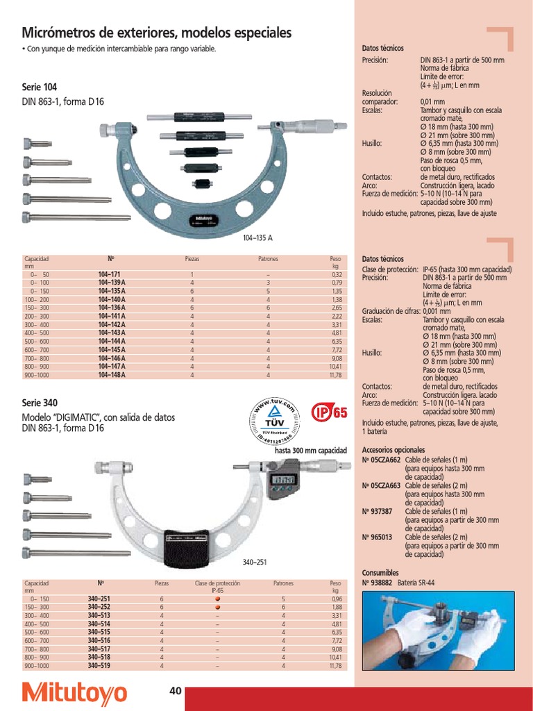 • Con yunque de medición intercambiable para rango variable. Datos técnicos