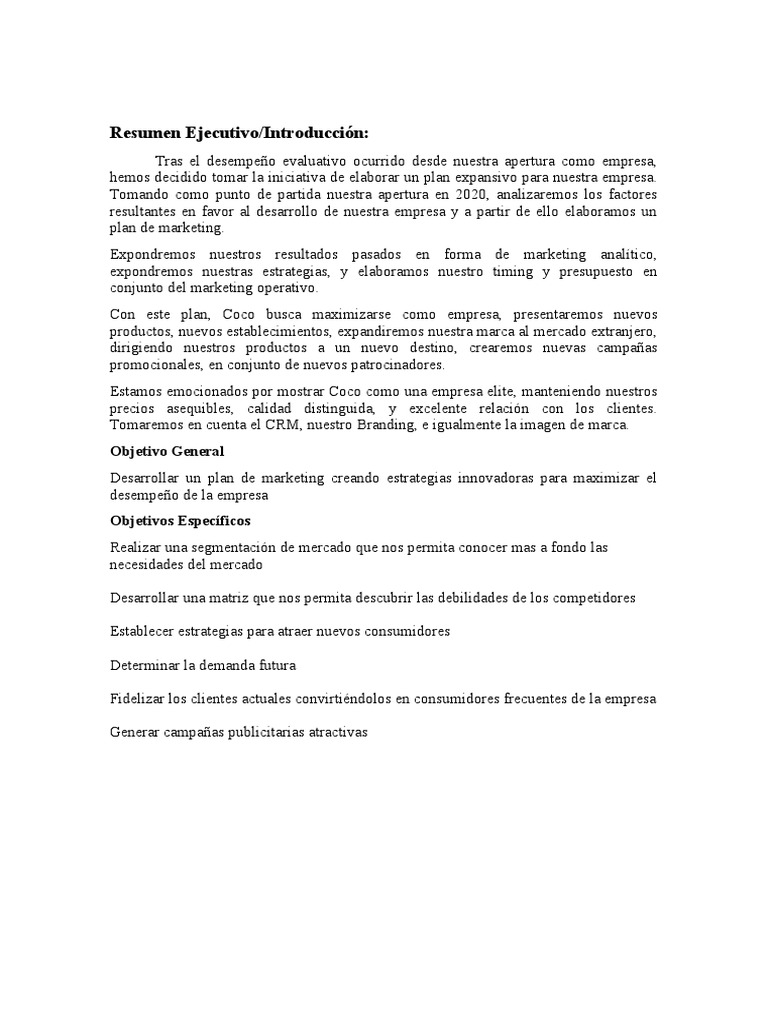 Resumen Ejecutivo/Introducción: