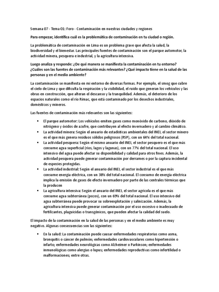 Semana 07 - Tema 01: Foro - Contaminación en nuestras ciudades y regiones
