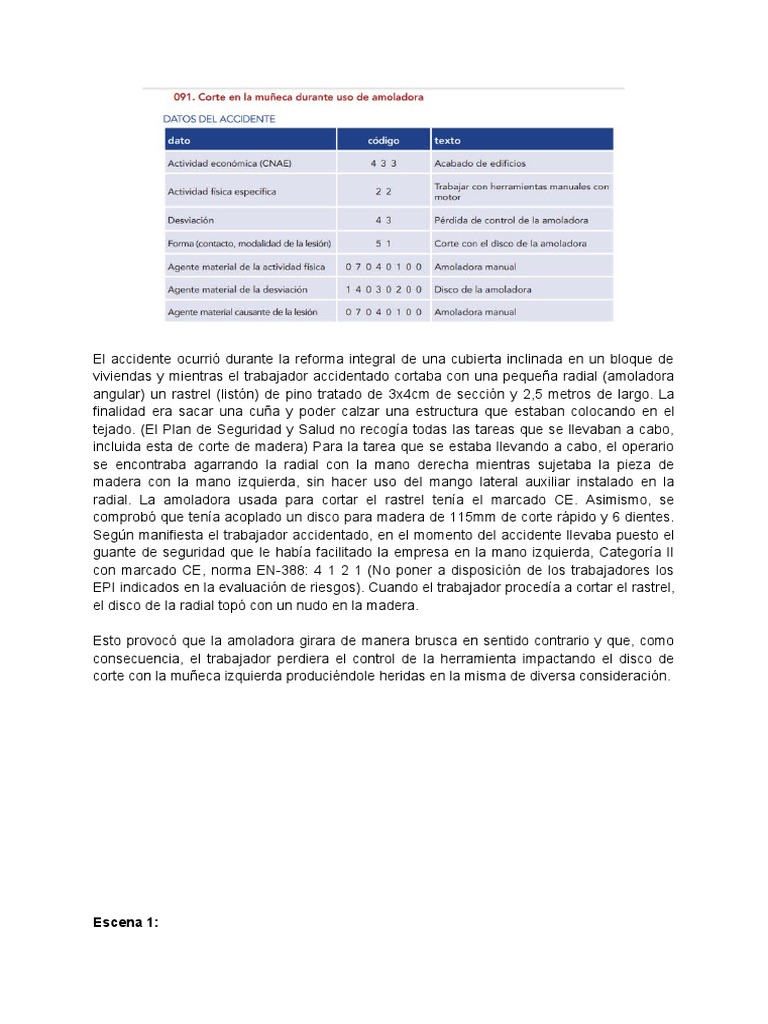 388: 4 1 2 1 y, cuando el trabajador procedía a cortar el rastrel, el disco de la radial