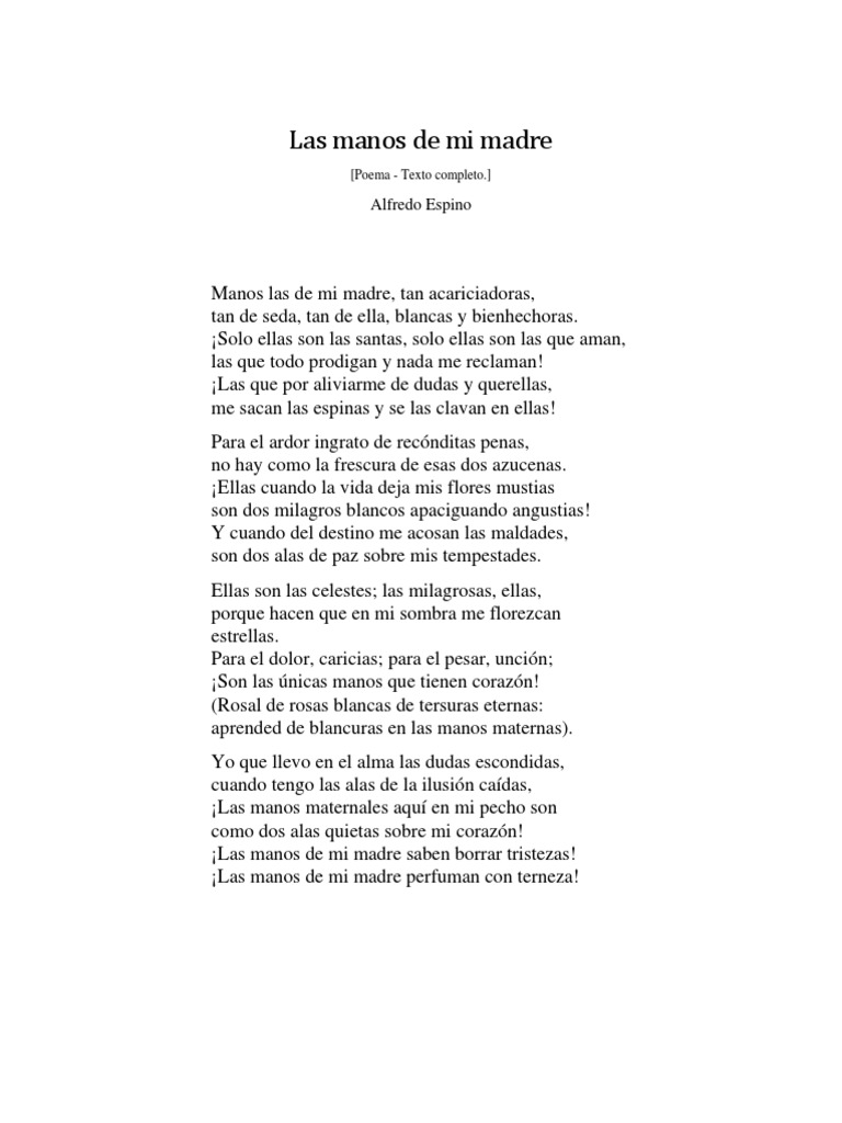Manos las de mi madre, tan acariciadoras,
