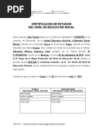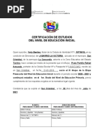 continuará estudios en el 1er. Grado del Nivel de Educación Primaria, previo
