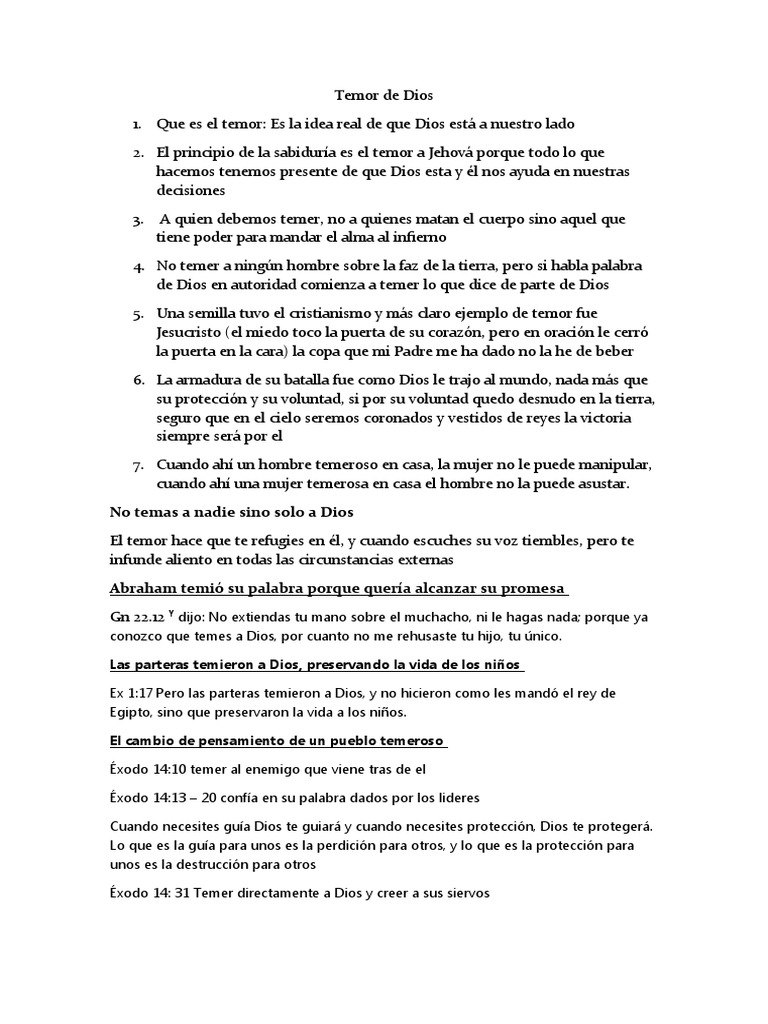 1. Que es el temor: Es la idea real de que Dios está a nuestro lado