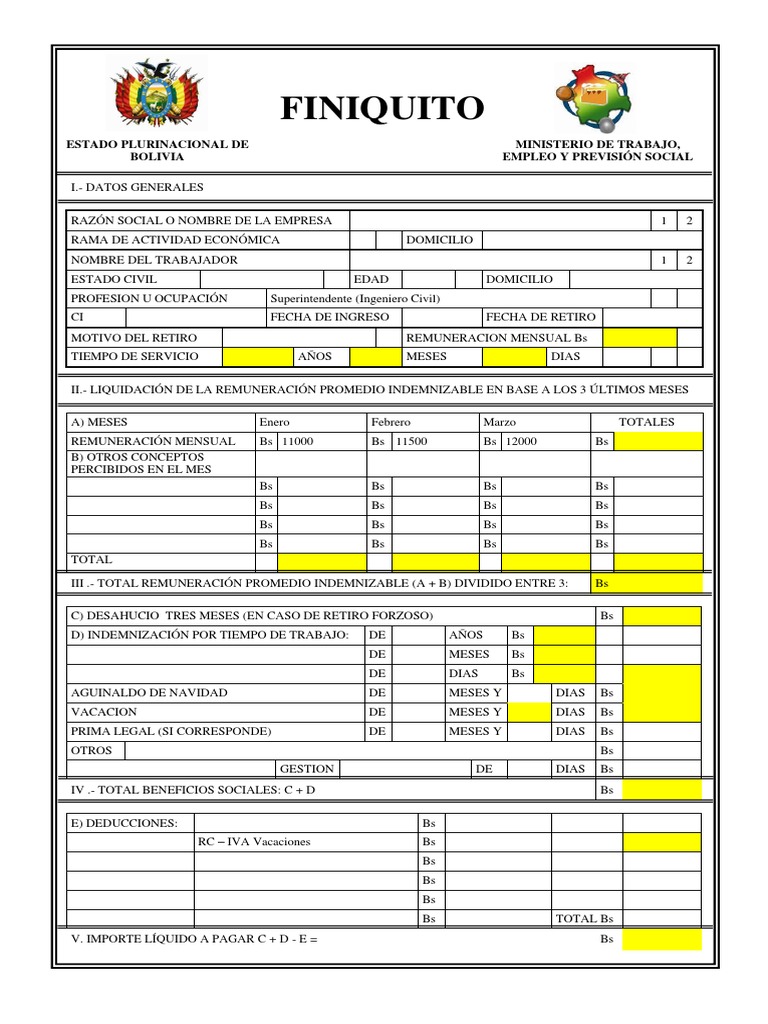 MOTIVO DEL RETIRO REMUNERACION MENSUAL Bs