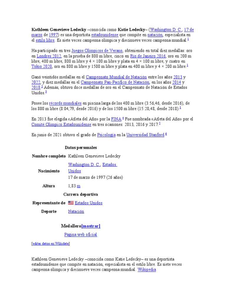 Nombre completo Kathleen Genevieve Ledecky