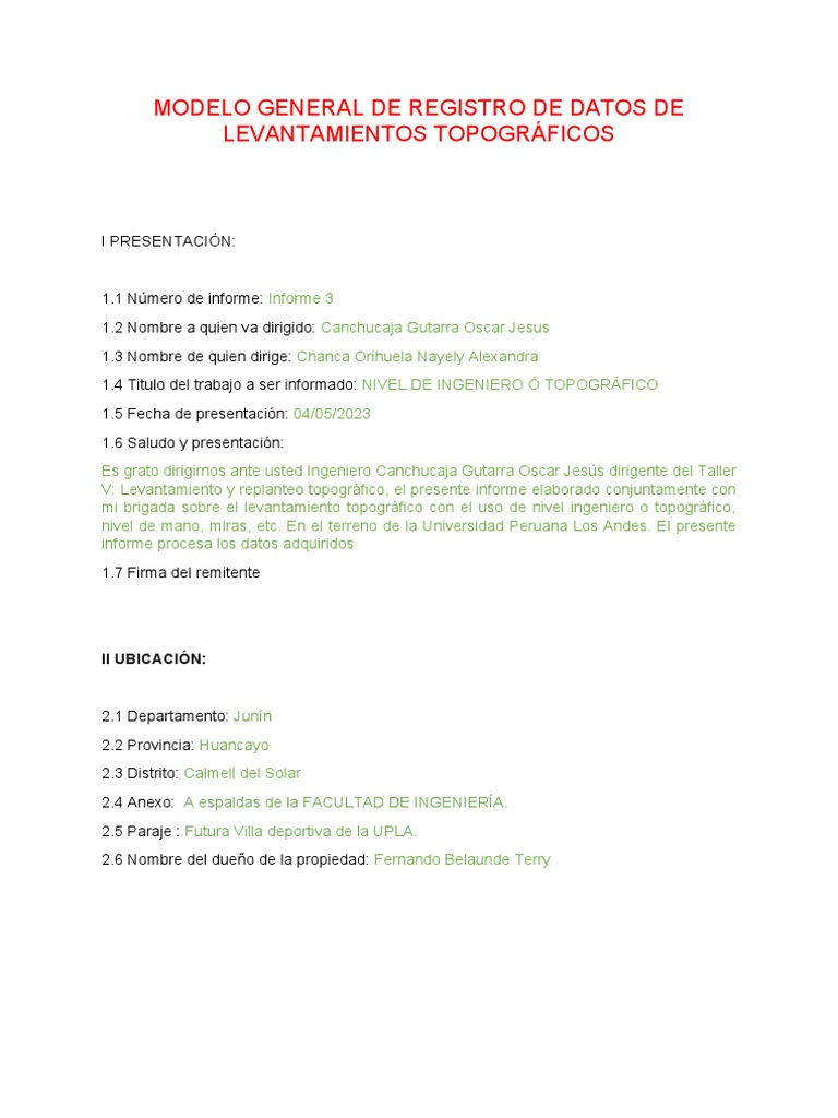 1.4 Titulo del trabajo a ser informado: NIVEL DE INGENIERO Ó TOPOGRÁFICO