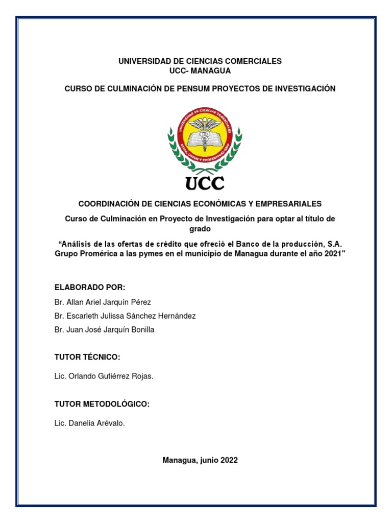 Zúniga Gaitán, D. (2016). Acceso al crédito bancario para las mipyme en Nicaragua,