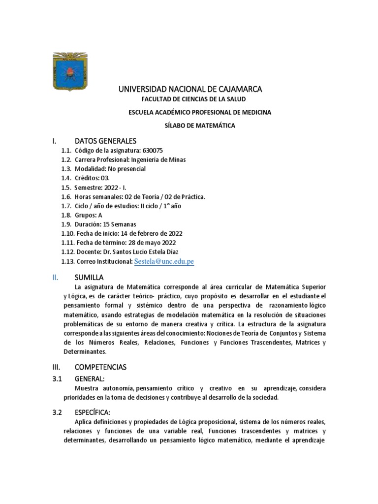 SÍLABO DE MATEMÁTICA