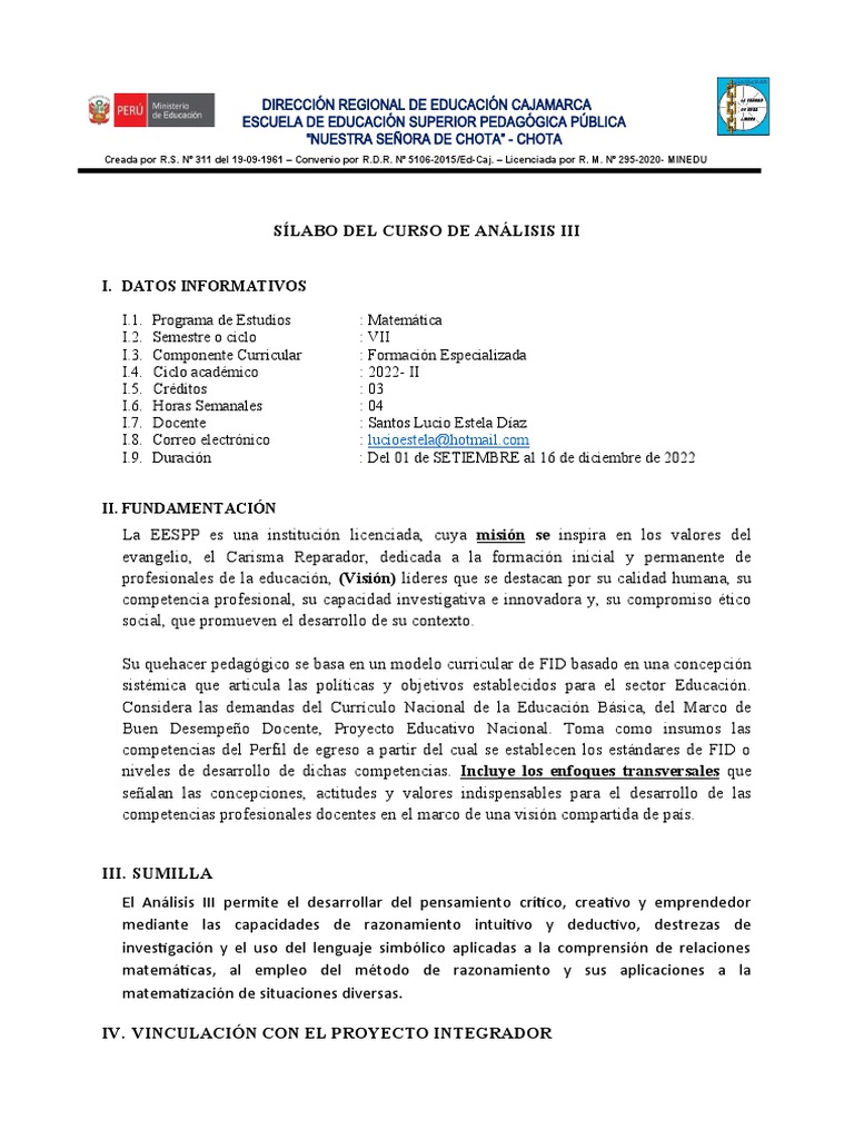 SÍLABO DEL CURSO DE ANÁLISIS III