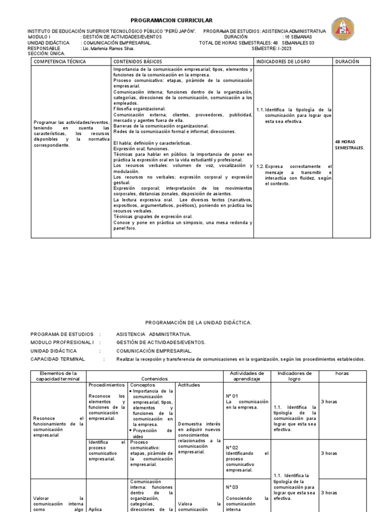 INSTITUTO DE EDUCACIÓN SUPERIOR TECNOLÓGICO PÚBLICO “PERÚ JAPÓN”. PROGRAMA DE ESTUDIOS: ASISTENCIA ADMINISTRATIVA