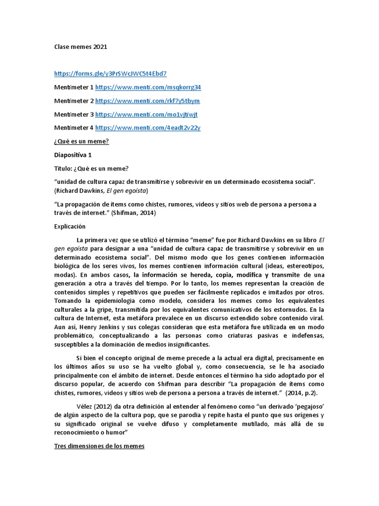 generación a otra a través del tiempo. Por lo tanto, los memes representan la creación de