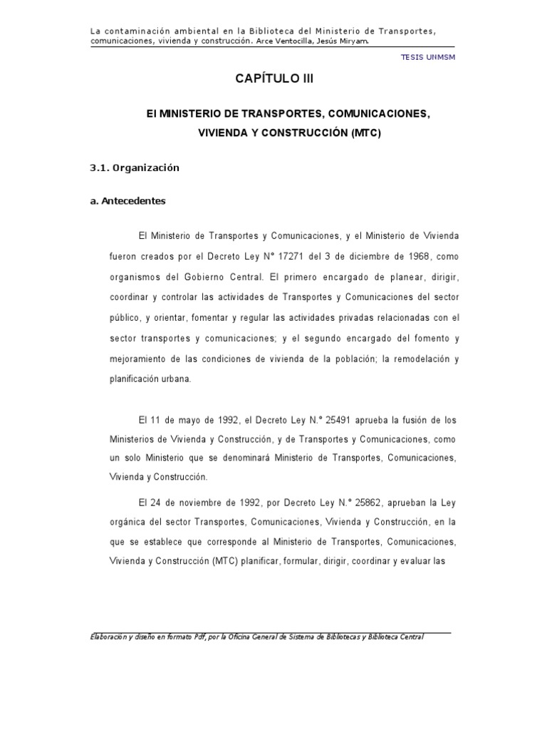 Ley orgánica del sector transportes, comunicaciones, vivienda y construcción". En Normas legales. Lima, 24-11-92