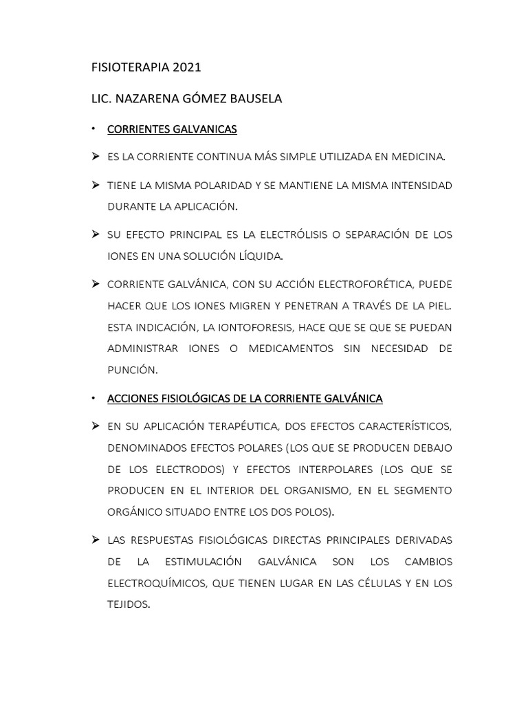 • ACCIONES FISIOLÓGICAS DE LA CORRIENTE GALVÁNICA
