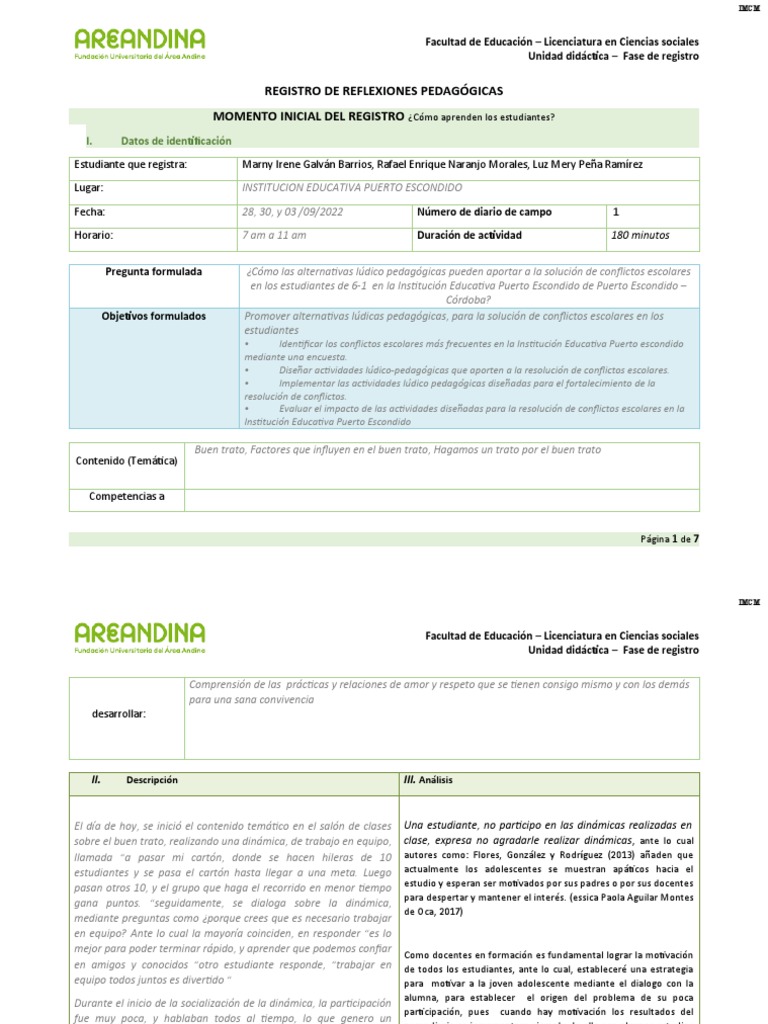REGISTRO DE REFLEXIONES PEDAGÓGICAS