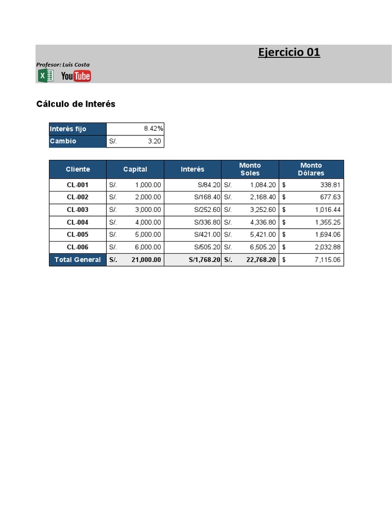 CL-001 S/. 1,000.00 S/84.20 S/. 1,084.20 $ 338.81