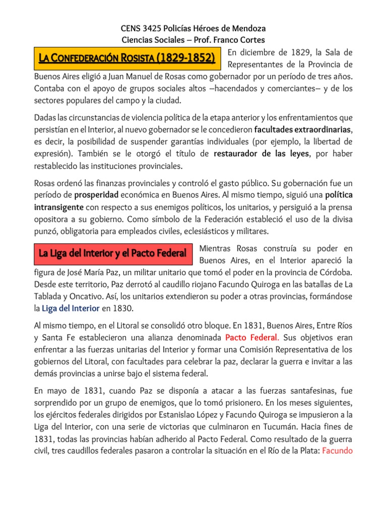 LA POLÍTICA REPRESIVA DEL RÉGIMEN ROSISTA Confederación Argentina.