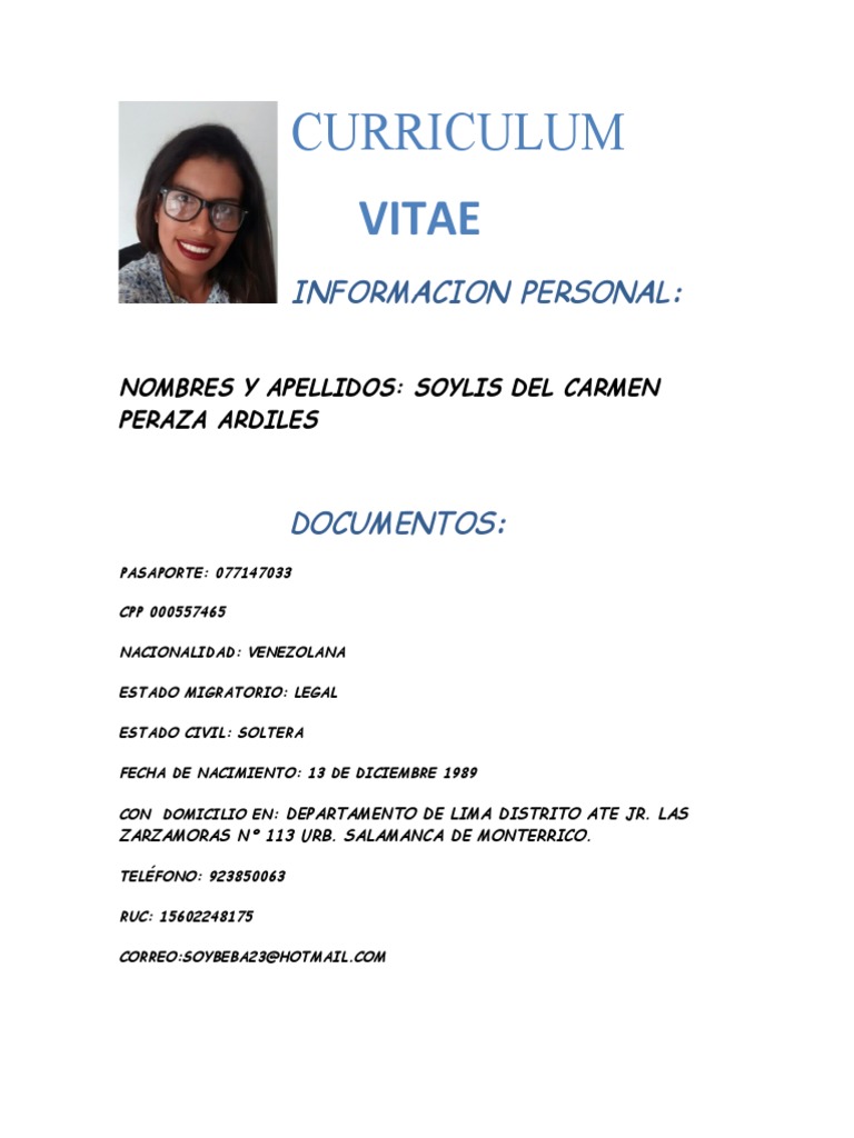 NOMBRES Y APELLIDOS: SOYLIS DEL CARMEN